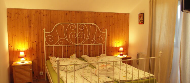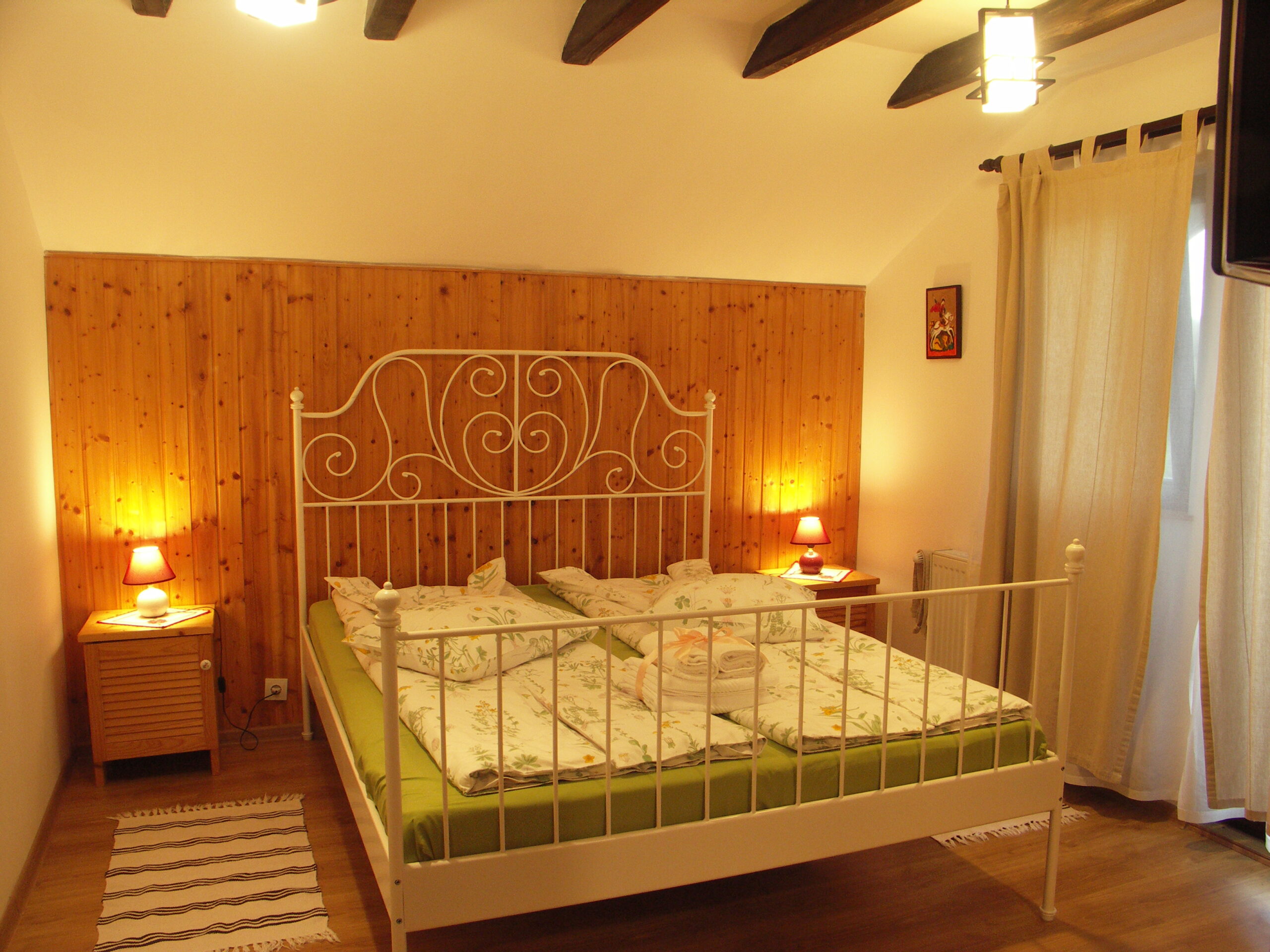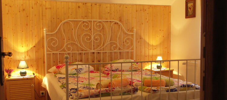Finisata si mobilata in stil rustic antichizat camera este amplasata la mansarda casei fiind orientata spre apus. De la balconul acestei camere se poate admira o livada de pruni cu faneata cat si lunca raului Taraia.