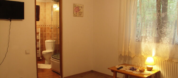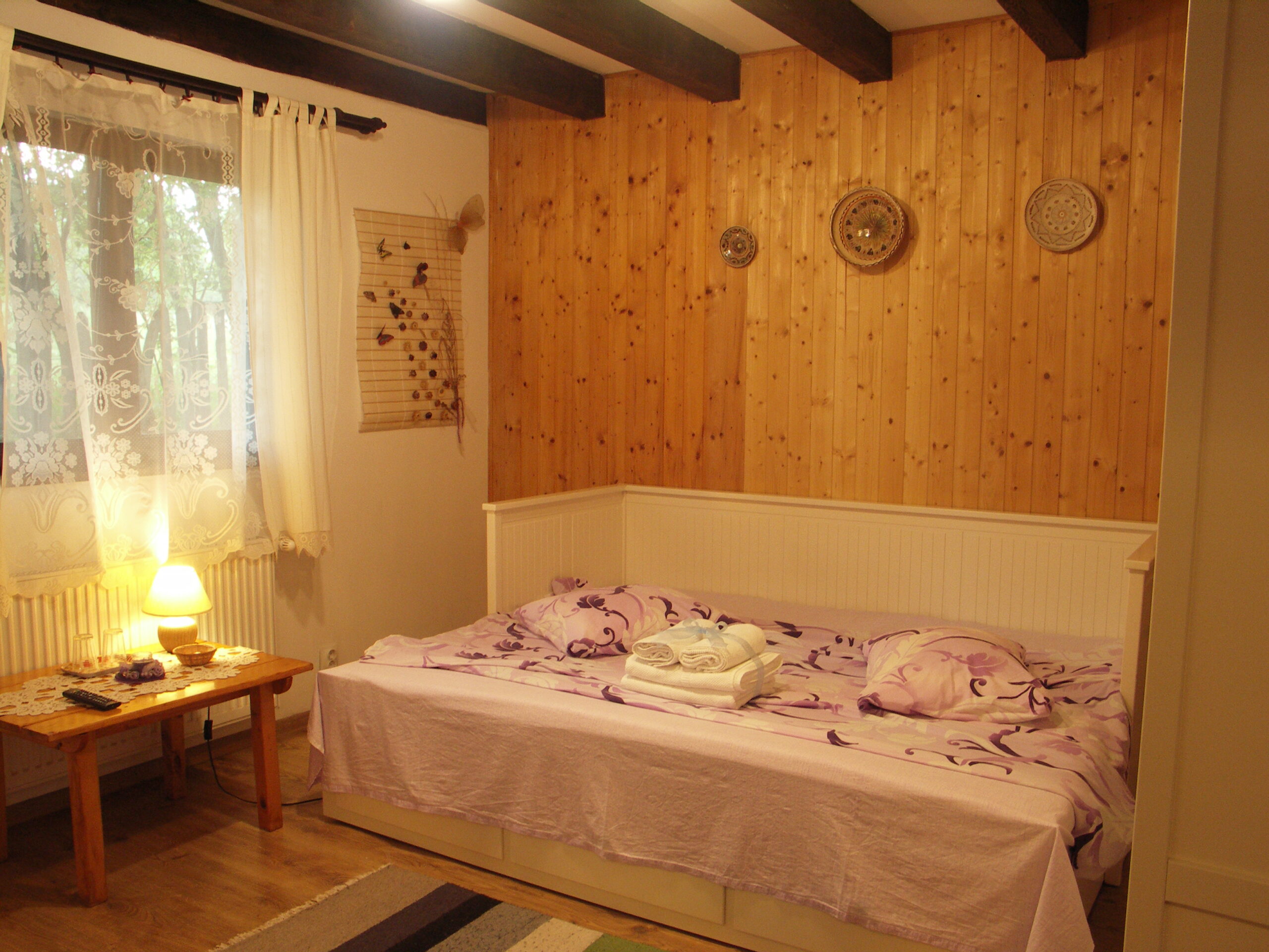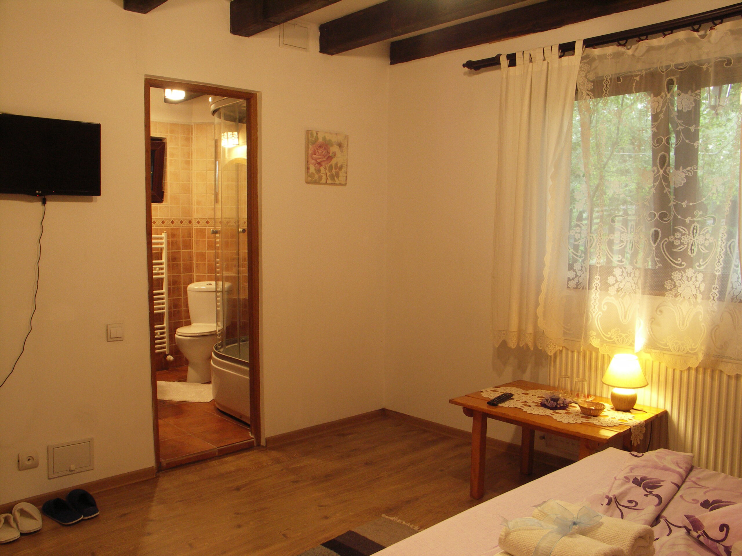 Camera finisata in mod traditional, este amplasata la parterul casei si este orientata spre rasarit, oferind o priveliste deosebita asupra gradinii si luncii raului Taraia. Va puteti prepara mancarea in bucataria complet utilata pusa la dispozitia dumneavoastra sau puteti lua masa la unul dintre restaurantele din apropiere. Perioada minima a sejurului este de 2 nopti. Agreem grupurile de 6-8 turisti. Ora check-in:14:00 pm.